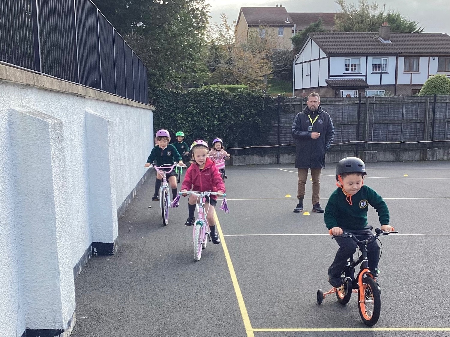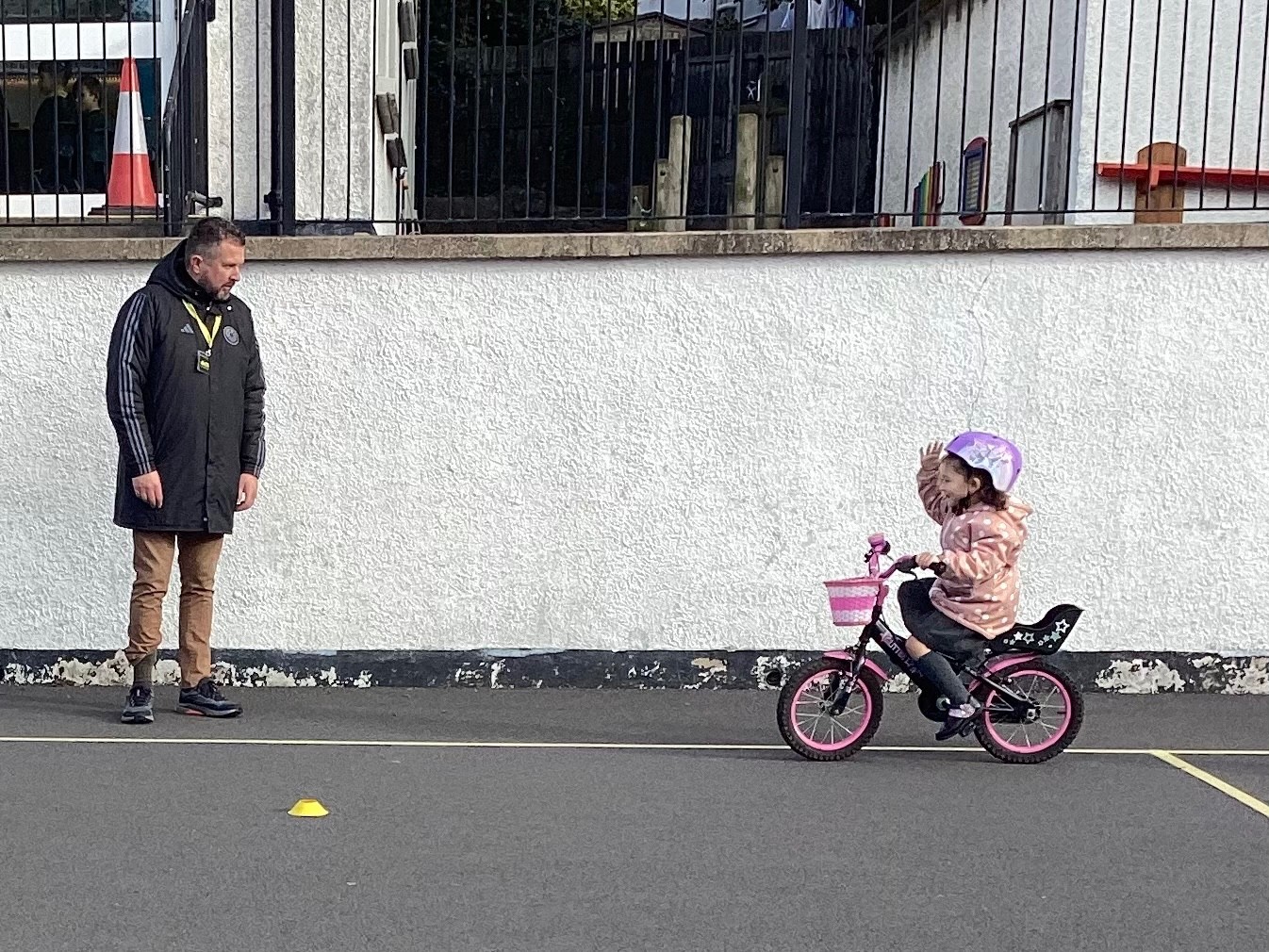 Today we welcomed back Dave Wiggins, our Sustran liaison officer, who held a cycling workshop. As this is our walk, scoot and cycle to school week we were delighted that 26 pupils from P2 to P7 availed of Dave’s expertise.